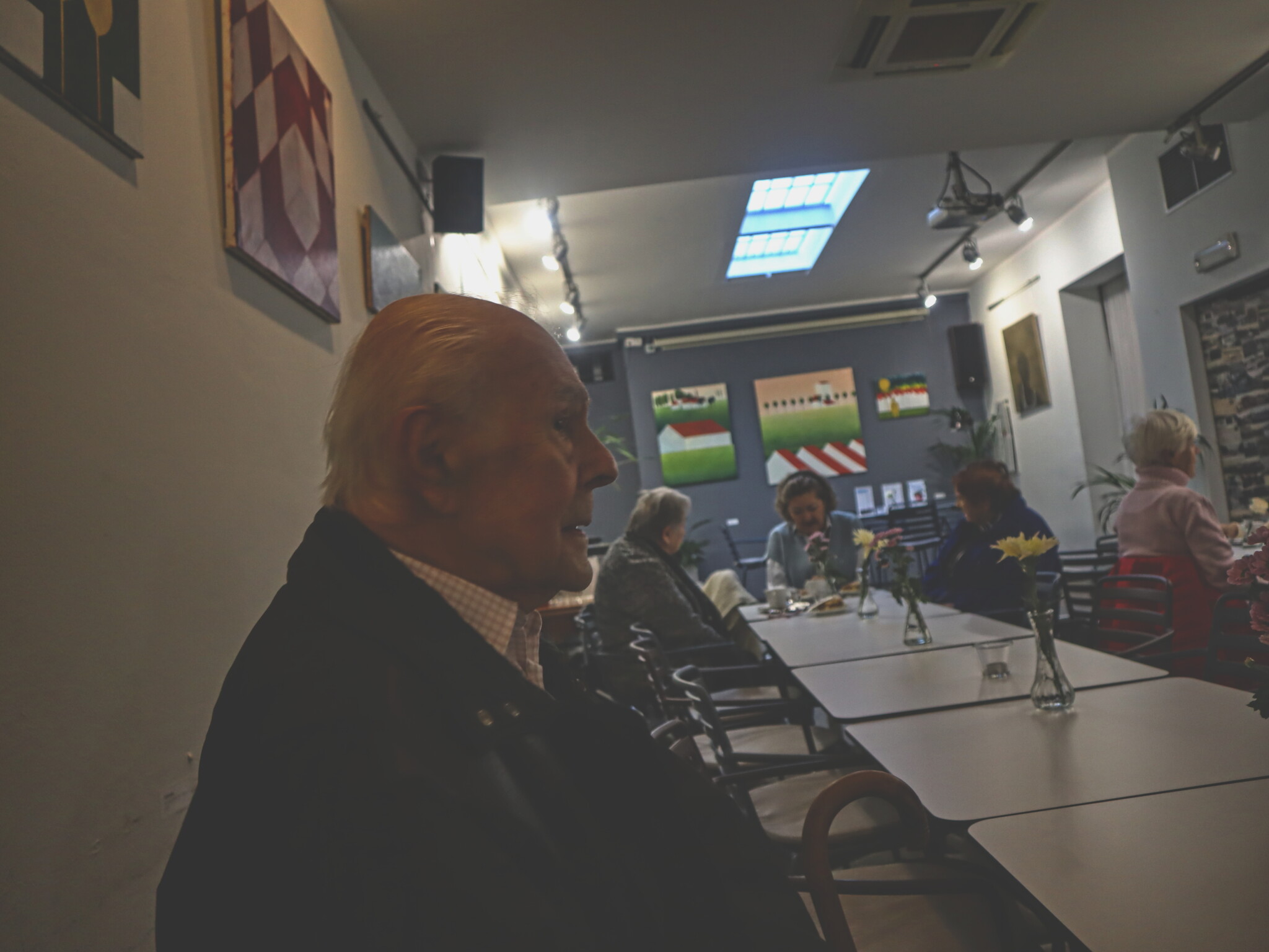 Včera mě vřele pozval přes Mesenger na jeho dnešní zahájení výstavy v KC Nová Beseda. Ráno jsem si dal na moje stránky jeho podcast se starostkou Zorkou Starčevicovou. Dalo mě to práci, než jsem to dal na moje stránky. Chtěl jsem to dat jako hudbu, ale nešlo mě to, tak jsem to dal tak jak to dávám z YouTube, ale zkusil jsem to znovu a zjistil jsem, že to jde stáhnout i v mp3. Tak jsem to dal odkaz na tu fotku. Když jsem zjistil, jak ten podcast nahrát tak jsem to také udělal na mé stránce 70 Let Tomáše Hradeckého, kterou postupně doplňuji. Do Kavárny Beseda jsem jel před půl 4 a Borůvku jsem postavil u vchodu protože ve uvnitř bylo hodně lidí a dovnitř jsem šel po svých. Úvodní slovo Dufka bylo v sále. Luděk Emanovský, Hofman Vladimír a pán který hrál na foukací harmoniku, ale nevím jak se jmenuje. Oldřich mluvil o sobě, a i jeho spolužácích a kamarádech. Potěšilo mě že se zmínil o mě a mojí matce Dadule. Po proslovech jsem už jel domů přes Babiččinu Besedu dělat fotky dopsat tento text. Fotky